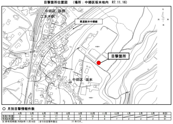 上越市からクマの目撃情報についてお知らせします。 ——- 11月16日(日・・・